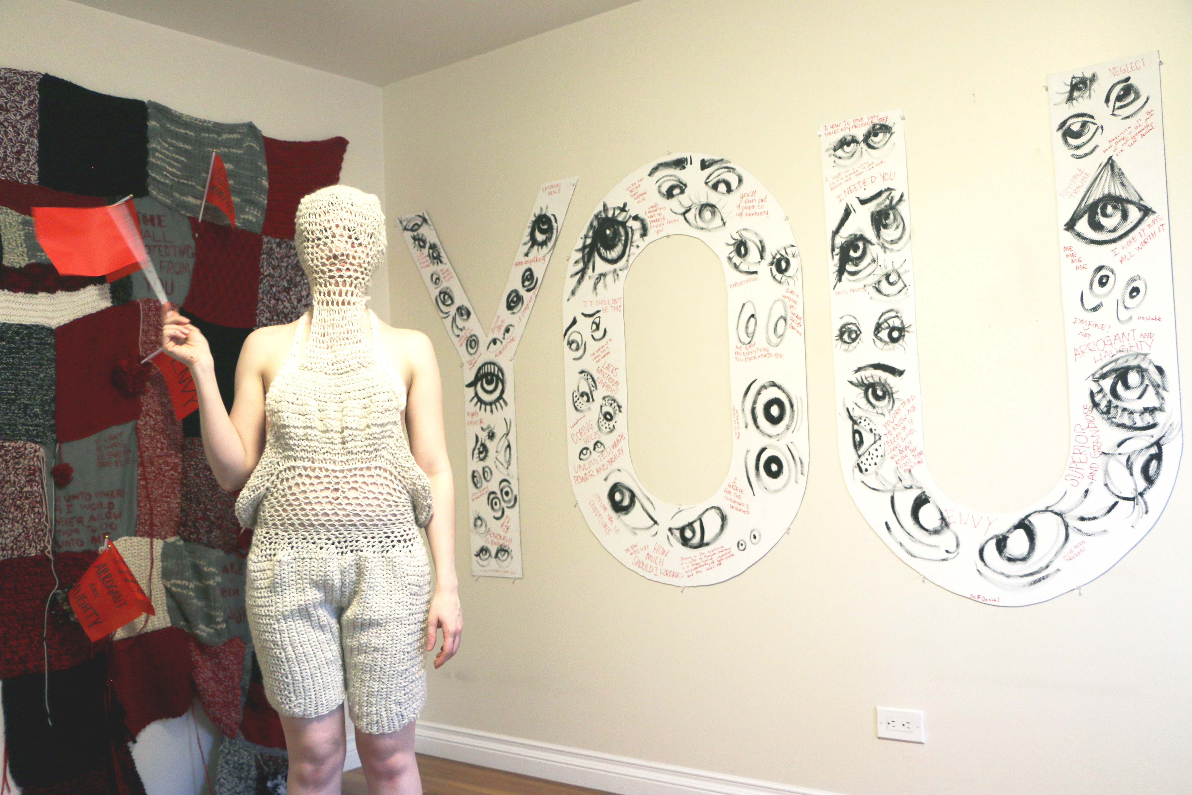 This fiber-art installation gives survivors of NPD a safe space to identify symptoms of CPTSD, reflect on their own narcissistic behaviors and share reflections with hopes to educate others experiencing this invisible trauma, abuse and emotional neglect.